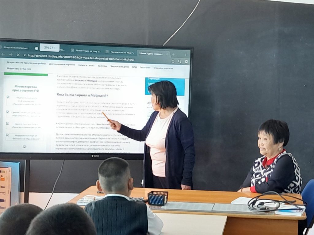 24 мая 2022 года в 5 а,б классах учителями русского языка и литературы Монгуш Р.Ш. и Дамба З.Д. проведено мероприятие, приуроченное Дню славянской письменности и культуры. Мероприятие состояло из двух частей: 1. Монгуш Р.Ш. ознакомила учащихся с историей возникновения русской письменности и составителями славянской азбуки Кириллом и Мефодием. 2. Дамба З.Д. провела интересную викторину для детей.